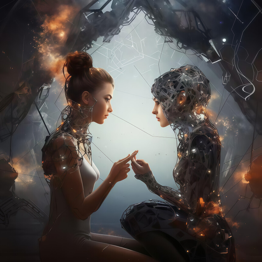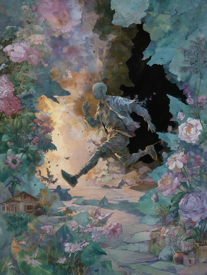 デジタルエフェクトを用いた超現実的な創作は、「テクノロジーが加速する中で、人はどう生きるべきか」というテーマを表現している。人と機械が見つめ合う場面も、都市が田園へと変わる光景も、あるいは砕けた世界の中で輝く天使のイメージも、単なる技巧の誇示ではない。むしろ、急速に変化する時代の中で、テクノロジーや不安に振り回されないように、というメッセージが込められている。